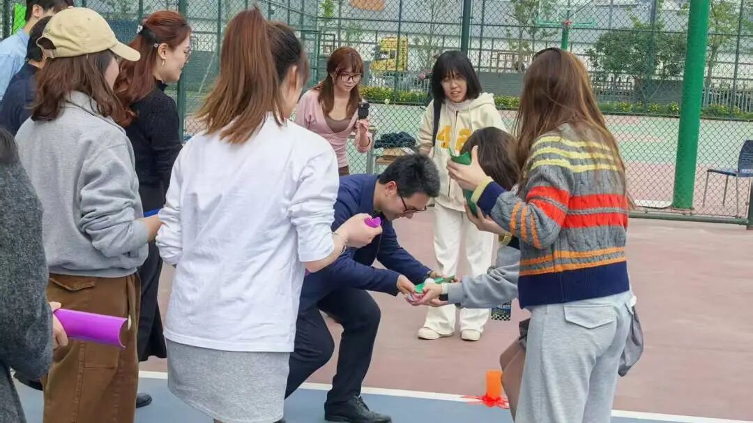本次运动会采用集体项目+个人/组队挑战相结合的形式。师生们分组结队,先后挑战了管道传球、套大鹅、身不由己、急速三子棋、蒙眼击剑、足球&飞盘九宫格、企鹅漫步七个游戏项目。春日暖阳中,欢声笑语不断,运动的快乐洋溢在每个人脸上。