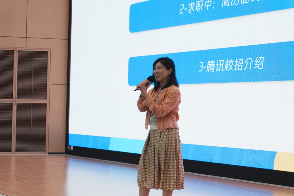 Tencent Recruitment Manager Yuxian Liu conducted a career coaching session titled “Enhancing Job Competitiveness for University Students,” offering practical advice on resume optimization, interview techniques, and career planning. Drawing from real-world examples of Tencent’s campus recruitment, she helped students better understand corporate talent requirements and enhance their employability.